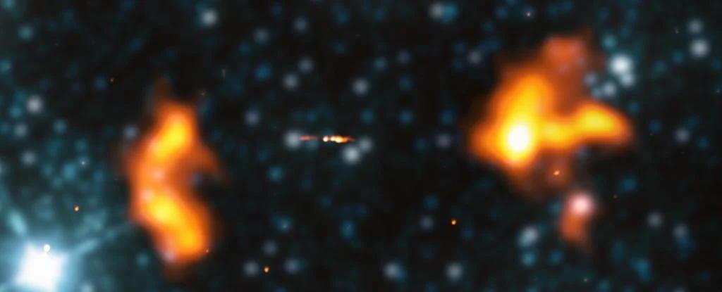 وتعد المجرات الراديوية العملاقة لغزا آخر في عالم مليء بالغموض. وهي تتكون من مجرة ​​مضيفة (مجموعة النجوم التي تدور حول نواة مجرة ​​تحتوي على ثقب أسود هائل)، بالإضافة إلى نفاثات ضخمة تندلع من مركز المجرة.