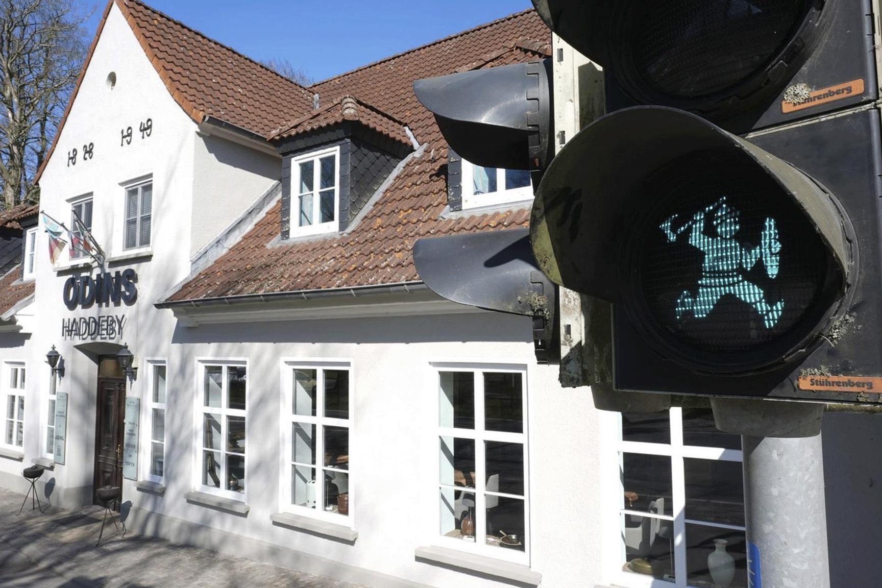 مدير مكتب بلدة هاديبي رالف فيدرسن قال إن إحدى نساء البلدة رأت إشارة مرور على شكل يعود إلى عصر الفايكينغ في الدانمارك، ثم سألته عن سبب عدم وجود إشارة مماثلة لها في موقع التراث العالمي ببلدتهم.