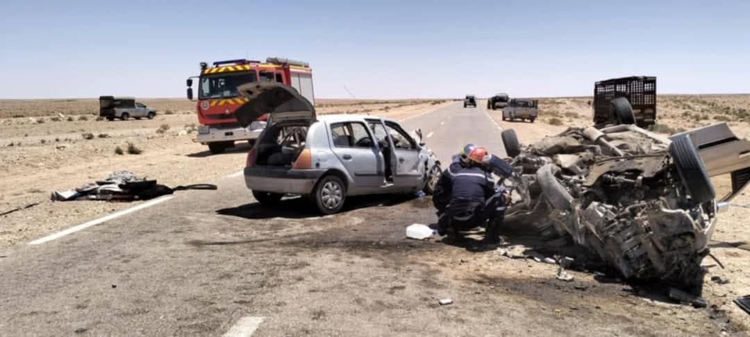 وقد تدخلت مصالح الحماية المدنية في حدود الساعة 12:00 إثر وقوع حادث اصطدام بين سيارتين على مستوى الطريق الوطني رقم 01 باتجاه تقرت، على بعد حوالي 50 كلم من بلدية ودائرة مسعد.