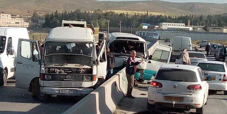 وأضاف البيان أن الحادث خلف 13جريحا اصيبوا بجروح متفاوتة الخطورة ووقع على مستوى الطريق الوطني رقم 20 في محور الدوران بمخرج الخروب باتجاه بلدية بن باديس.