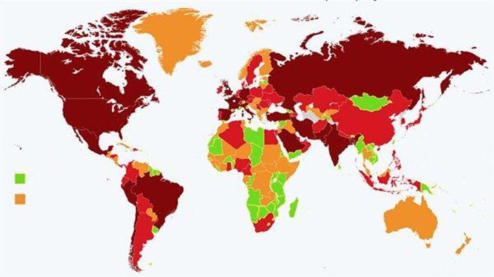 أفريقيا برسالجزائر. أصدرت المراكز الأمريكية لمكافحة الأمراض والوقاية منها تحديثًا للخريطة التي توضح تقييمها لمستويات الوضع الوبائي لانتشار فيروس كورونا حول العالم، وذلك عبر موقعها على الأنترنت. ويشمل التقييم أربعة مستويات، حيث يشكل المستوى الرابع الأعلى خطورة ويشكل المستوى الأول خطورة أقل.