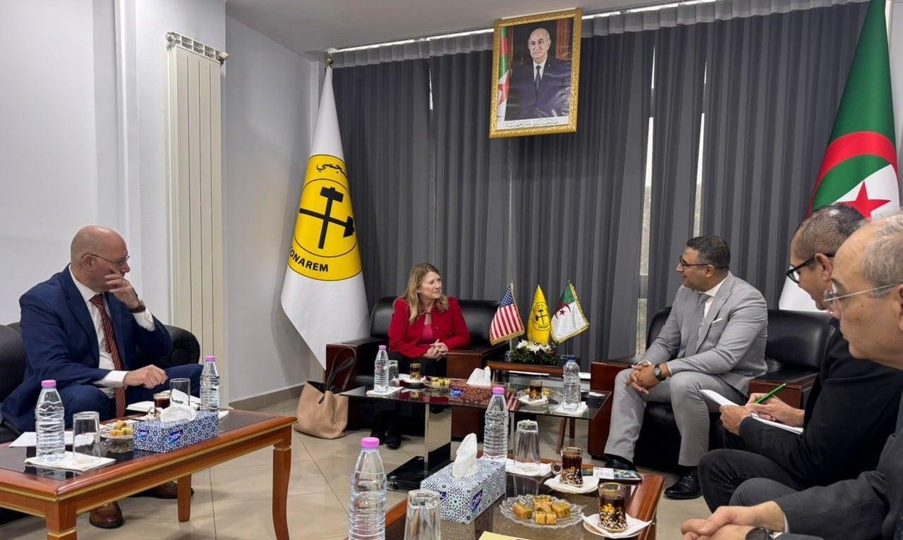 أفريقيا برس – الجزائر. اتفق المدير العام لمجمع سونارم، رضا بلحاج، و ديبرا ك. مارتن، المستشارة التجارية بمصلحة التجارة التابعة للسفارة الأمريكية بالجزائر، على تعزيز التعاون والاستثمار في القطاع المنجمي، خلال لقاء عُقد بمقر المجمع.