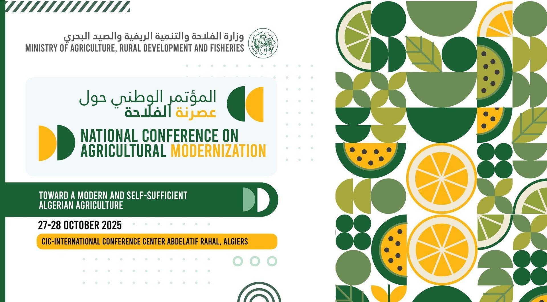 أفريقيا برس – الجزائر. يحتضن المركز الدولي للمؤتمرات “عبد اللطيف رحال” يومي 27 و28 أكتوبر الجاري، فعاليات المؤتمر الوطني حول عصرنة قطاع الفلاحة، بمشاركة نخبة من الخبراء الوطنيين والدوليين المختصين في المجال.