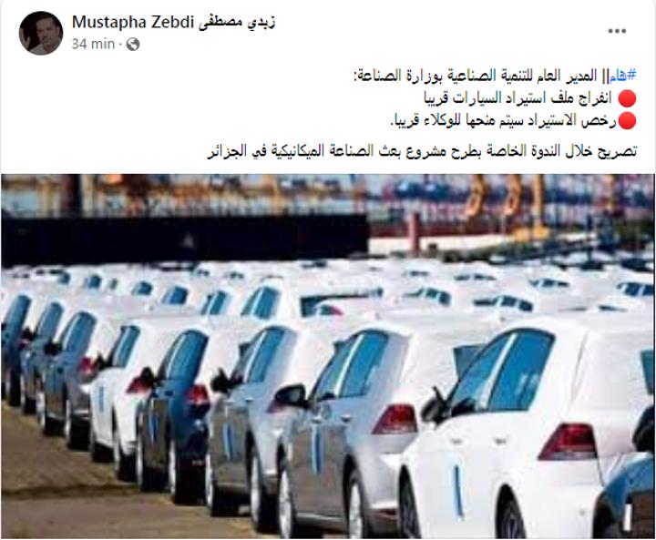 ويوم 7 فيفري 2022، أكد وزير الصناعة أحمد زغدار، أن التعديلات التي أُجريت على دفتر الشروط الجديد لاستيراد السيارات ستصدر قريبا.