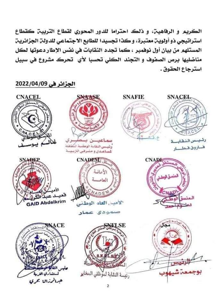 أفريقيا برس – الجزائر. ناشدت النقابات الوطنية المستقلة لقطاع التربية، رئيس الجمهورية إلى إعادة النظر في سلم الأجور الخاص بعمال القطاع.