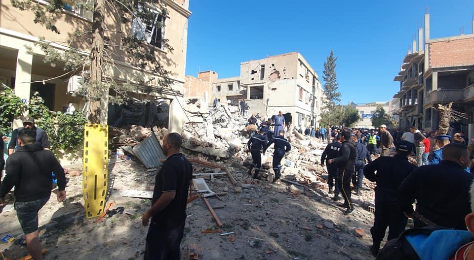 وحسب مصالح الحماية المدنية فقد وقع الانفجار بأحد المنازل بحي 5 جويلية بولاية ببرج بوعريريج بسبب تسرب الغاز مما أدى إلى انهيار بناية سكنية R+02.