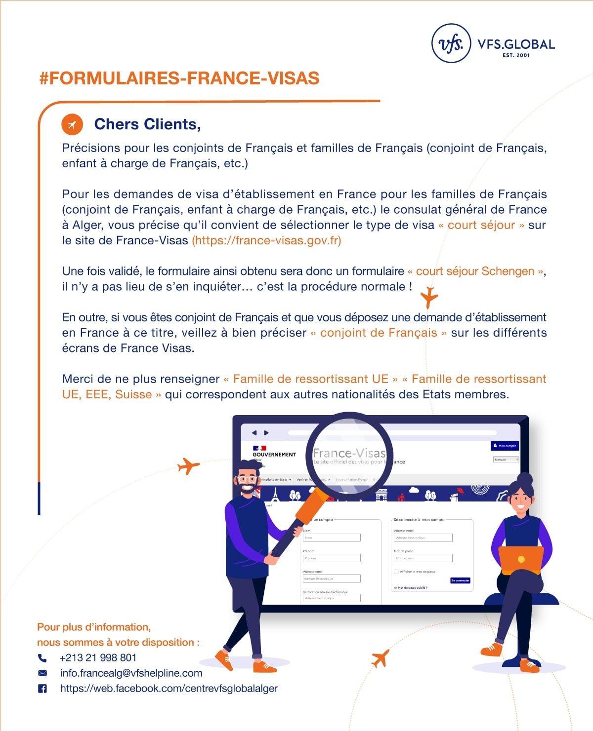 ويوم 2 مارس 2022، نشر مركز “في.أف.أس غلوبال” لخدمات التأشيرة الفرنسية، توضيحا جديدا حول طلبات التأشيرة المتعلقة بالأشخاص الذين يريدون الالتحاق بعائلتهم.