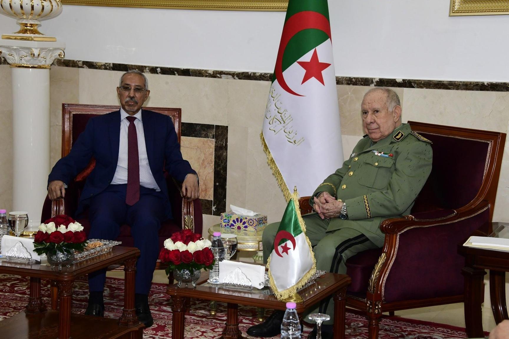 أفريقيا برس – الجزائر. استقبل الفريق أول السعيد شنقريحة الوزير المنتدب لدى وزير الدفاع الوطني رئيس أركان الجيش الوطني الشعبي وزير الدفاع الوطني وشؤون المتقاعدين وأولاد الشهداء للجمهورية الإسلامية الموريتانية حننه ولد سيدي ولد حننه الذي يقوم بزيارة عمل إلى الجزائر على رأس وفد عسكري هام.