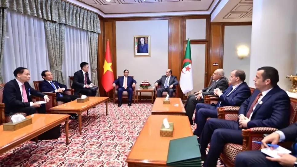 أفريقيا برس – الجزائر. أجرى الوزير الأول، سيفي غريب، اليوم الأربعاء، بقصر الحكومة، محادثات مع رئيس وزراء جمهورية فيتنام الاشتراكية، فام مينه شينه، الذي يؤدي زيارة رسمية إلى الجزائر تمتد من 18 إلى 20 نوفمبر 2025، وفقا لبيان مصالح الوزير الأول.