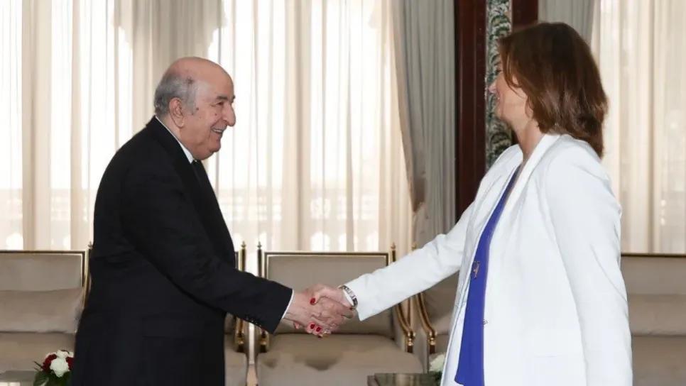 أفريقيا برس – الجزائر. استقبل رئيس الجمهورية، عبد المجيد تبون، صباح اليوم، تانيا فايون، نائبة رئيس الوزراء ووزيرة الشؤون الخارجية والأوروبية لجمهورية سلوفينيا، التي تقوم بزيارة عمل إلى الجزائر على رأس وفد رفيع المستوى.