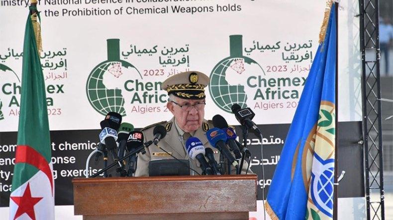 وجاء ذلك خلال إشراف الفريق أول شنقريحة، الثلاثاء بقصر المعارض الصنوبر البحري، بالجزائر العاصمة، على مراسم افتتاح يوم “كبار الشخصيات” لتمرين “كيميائي إفريقيا” الموجه للدول الأطراف في اتفاقية حظر الأسلحة الكيميائية لمنطقة إفريقيا.