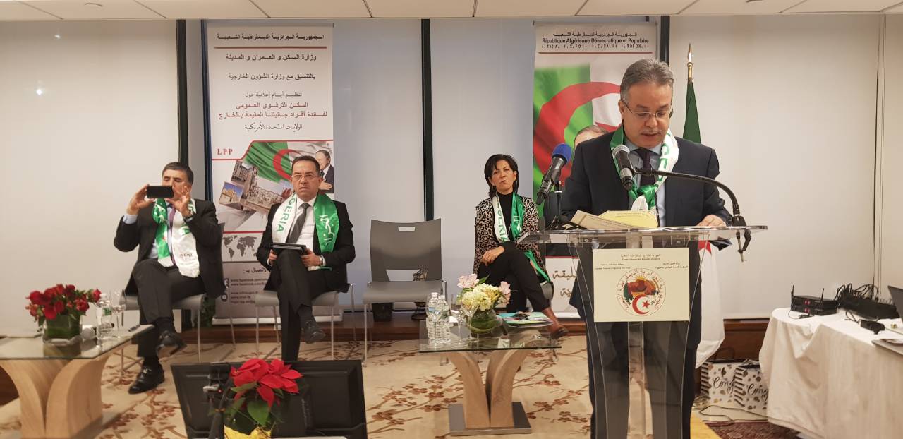 احتضنت القنصلية العامة للجزائر بنيويورك مساء أمس السبت، يوما إعلاميا حول برنامج السكن الترقوي العمومي و الوكالة الوطنية لدعم تشغيل الشباب نشطه وزيري السكن والعمل عبد الوحيد طمار ومراد زمالي، اللذان يقومان بزيارة عمل إلى الولايات المتحدة الأمريكية.
