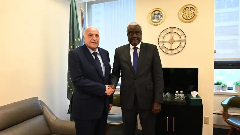 أفريقيا برس – الجزائر. أجرى وزير الخارجية الجزائري أحمد عطاف يوم الأحد بنيويورك، مباحثات ثنائية مع رئيس مفوضية الاتحاد الإفريقي موسى فقي محمد، ومفوّض الاتحاد الإفريقي للشؤون السياسية والسلم والأمن بانكولي أديوي.