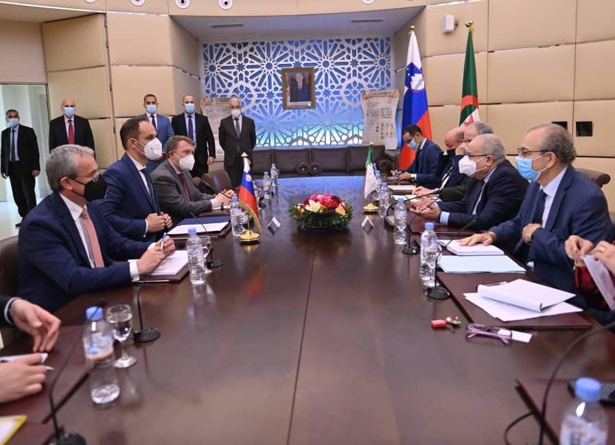 وجاء في تغريدة على حساب لعمامرة في تويتر:”جلسة مباحثات مثمرة مع نظيري السلوفيني، والوفد المرافق له”.