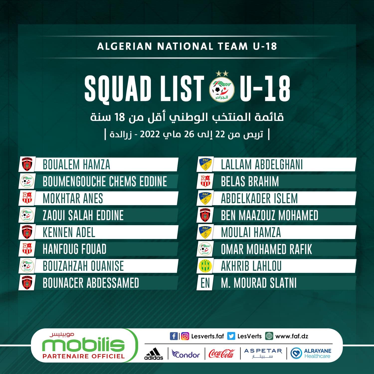 أفريقيا برس – الجزائر. انطلق، الأحد، بِمدينة زرالدة بِالعاصمة، تربّص المنتخب الوطني لِفئة أقلّ من 18 سنة.
