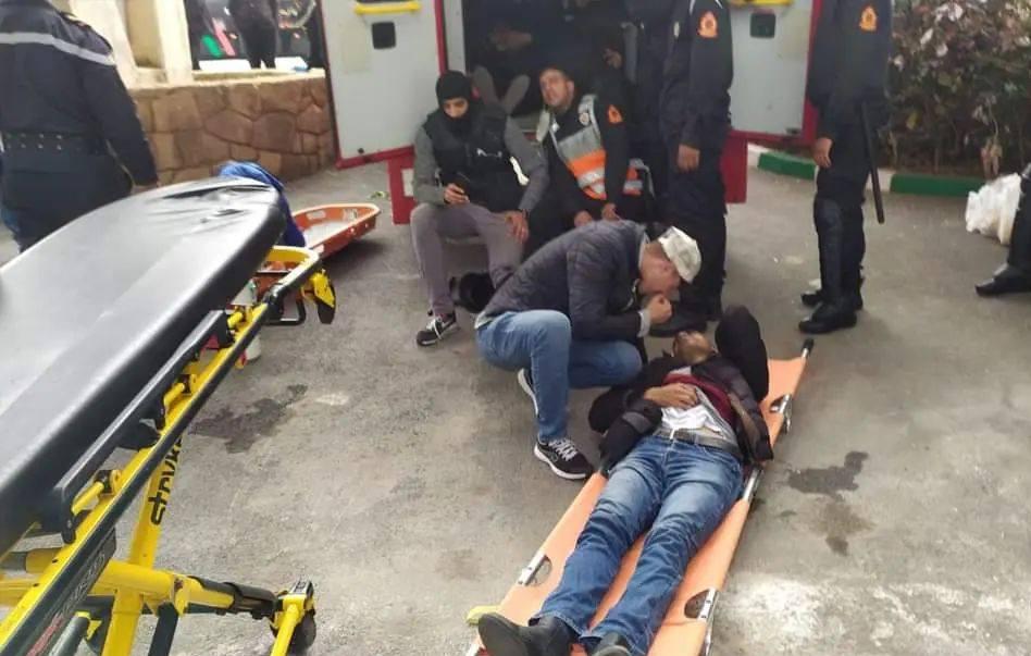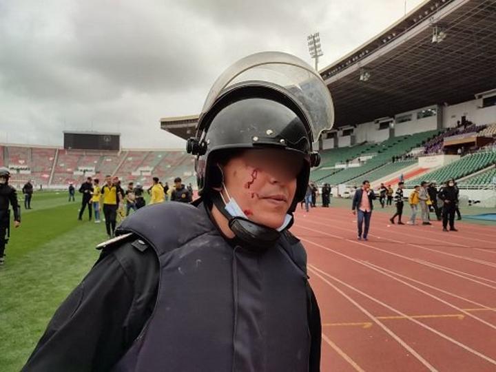 وهرولت قوات الإسعاف الطبي إلى الملعب، لِنقل الجرحى في صفوف رجال الأمن وأيضا الجمهور.