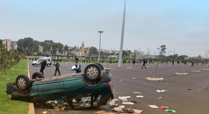 وغزا الجمهور أرضية ملعب العاصمة الرباط، الأمر الذي استدعى تدخّل قوات مكافحة الشغب لِقمع المشجّعين الغاضبين.