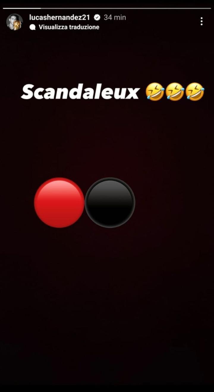 أمّا المدافع الدولي الفرنسي وبطل العالم لوكا هرنانديز الذي يرتدي زيّ فريق بايرن ميونيخ الألماني، فتدخّل بِدوره عبر موقع التواصل الاجتماعي “إنستغرام”، وكتب: “فضيحة!”، في إشارة إلى إلغاء الحكم لِهدف بن ناصر. عِلما أن لوكا هيرنانديز شقيق تيو هرنانديز لاعب الخط الخلفي للميلان.