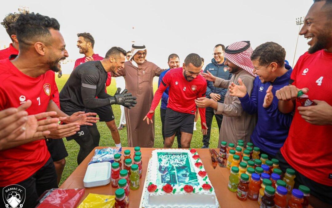 ونُظّم الحفل على هامش تدريبات فريق ضمك السعودي، الثلاثاء.