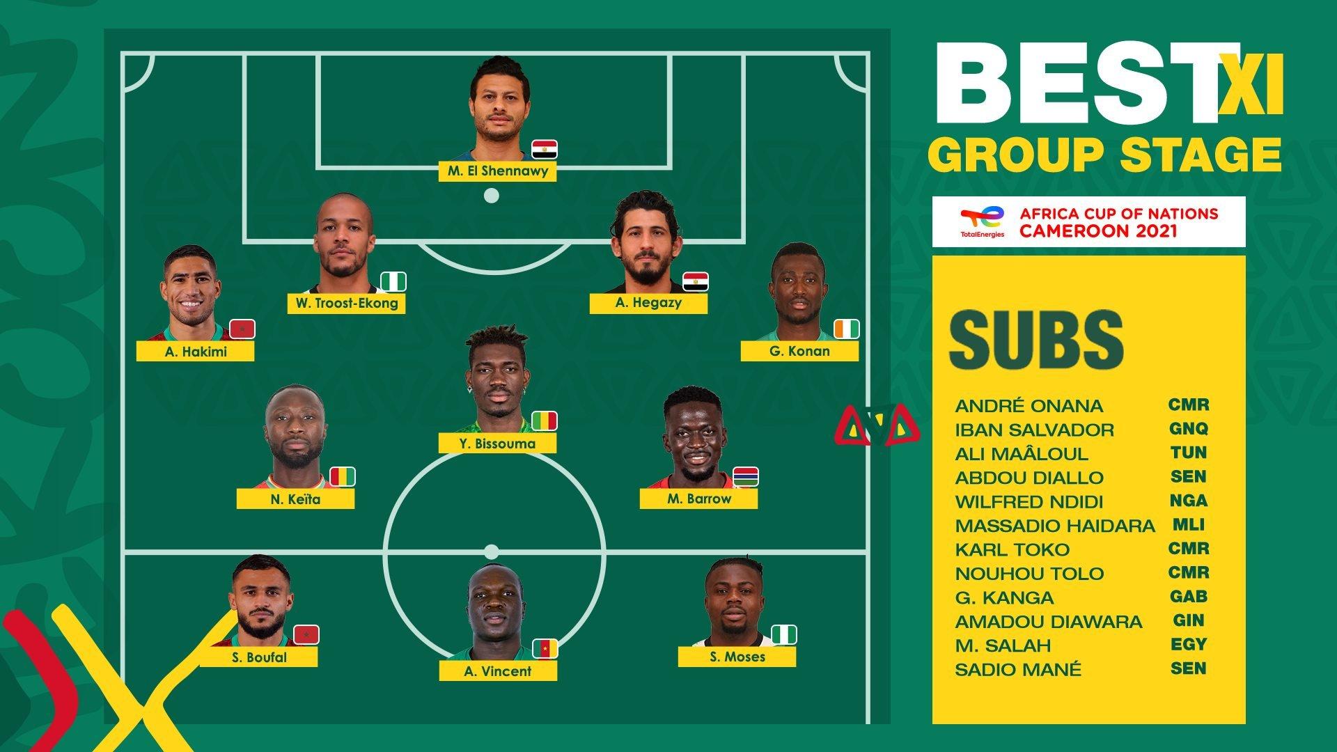 أفريقيا برس – الجزائر. كشف الاتحاد الأفريقي لكرة القدم، السبت عن التشكيلة المثالية لدور المجموعات لكأس أمم أفريقيا الجارية في الكاميرون.