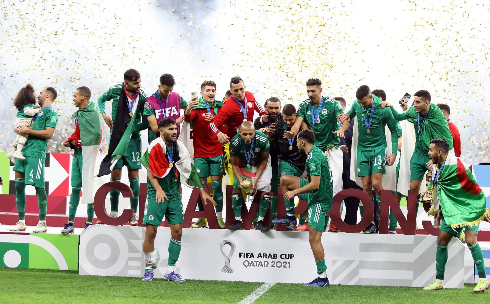 وجاء في تغريدة للصفحة الرسمية للنادي الكتالوني، بالعربية، على موقع التواصل الاجتماعي “تويتر”:” ألف مبروك لمنتخب الجزائر المتوّج بلقب بطولة كأس العرب”.