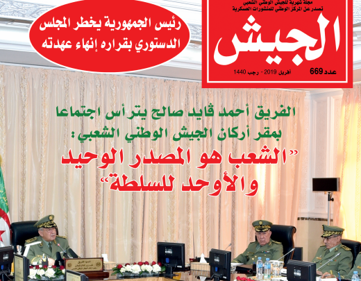 واكدت الافتتاحية مرة أخرى، التزام الجيش بعهده في أن يكون “حصنا منيعا للشعب والوطن ولعى هذا الأساس فموقه حيال التطورات الأخيرة التي تشهدها لابلاد سبقى ثابتا بما أنه يندرج ضمن إطار الشرعية الدستورية وضيع مصالح الشعب الجزائري فوق كل اعتبار ويرى دائما، أن حل الأزمة لا يمكن تصوره إلا بتفعيل المواد 7 و8 و 102 من الدستور.