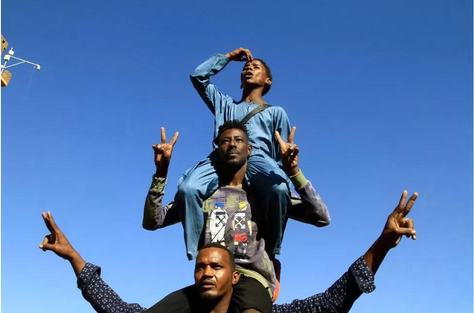 These young Sudanese men are protesting to call for justice for those who were killed in the wake of the country’s coup last year, which saw the military take over the government under the leadership of Gen Abdel Fattah Burhan.