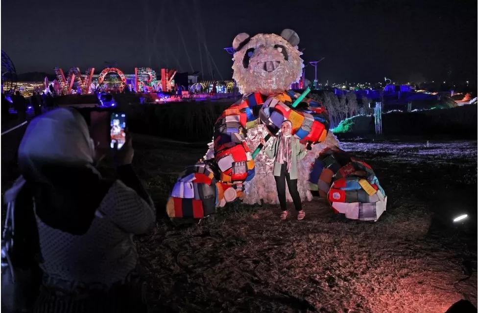 These COP27 attendees are taking pictures on the same day.