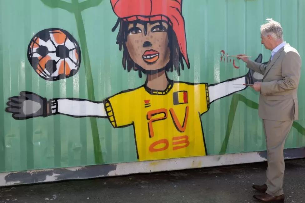 On Sunday King Philippe of Belgium signs a mural in Cape Town, South Africa.