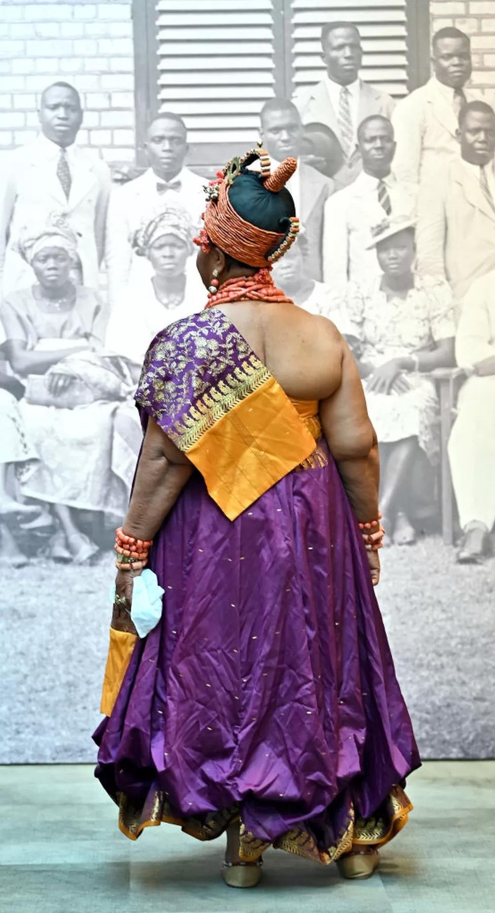 This woman attends the repatriation ceremony for the Benin Bronzes at the National Museum of African Art on Tuesday in Washington DC. The Bronzes – which are historical artworks – were stolen from modern-day Nigeria by the British in the 19th Century.
