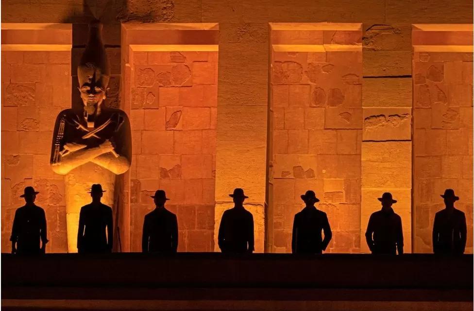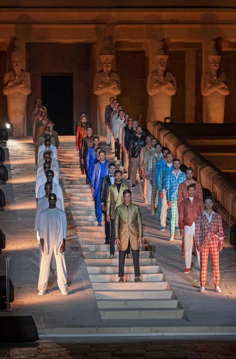 The following day, on Sunday, these male models take part in a fashion show for designer Stefano Ricci, at the temple of Pharaoh Hatshepsut near the River Nile in Egypt. Stefano Ricci is marking his 50th anniversary in the fashion industry.