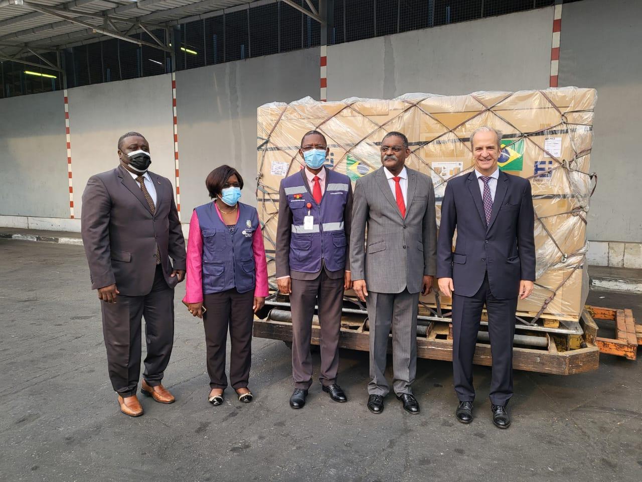 The donation was received by the secretary of State for International Cooperation and Angolan Communities, Domingos Vieira Lopes, and the Secretary of State for Public Health, Franco Mufinda.