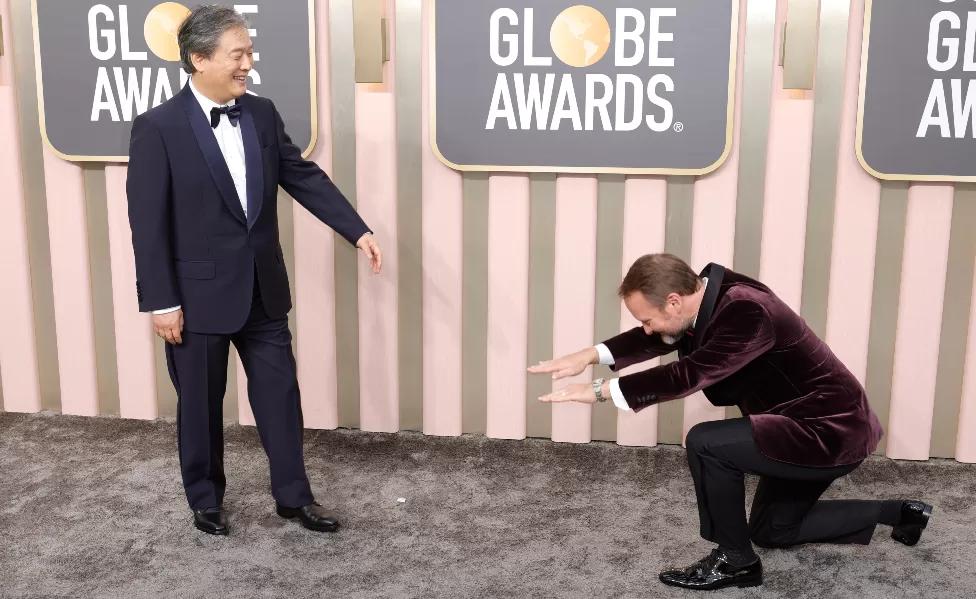 Glass Onion director Rian Johnson was seen bowing down to Decision To Leave director Park Chan-wook on the red carpet