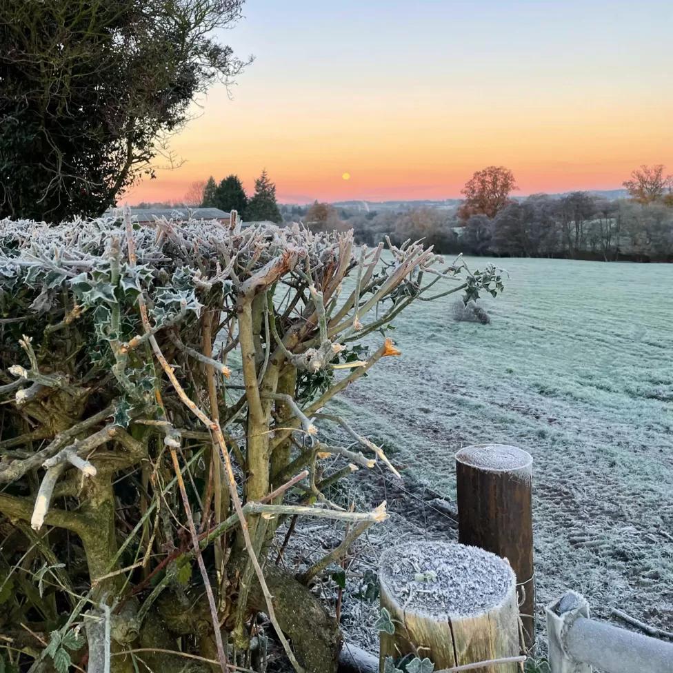 Frost formed overnight in Bromyard, Herefordshire where Mrs Baggins snapped this winter scene
