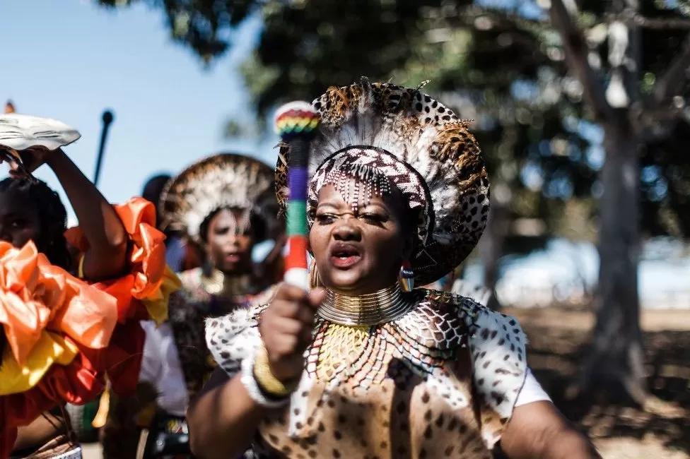 Members of the traditional Zulu regiments sang and chanted in celebration.