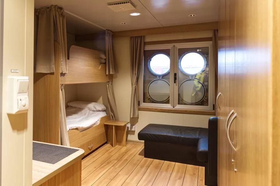 Each cabin is usually home to two people and has en suite facilities