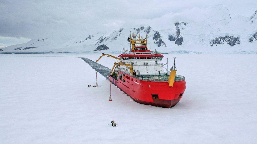 RRS Sir David Attenborough is what is called a Polar Ice Class 5 (PC5) ship, meaning it should be able to move through medium, first-year ice – about a metre (3ft) in thickness – at a speed of three knots (5.6km/h)