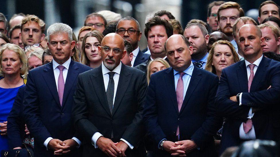 (Left-right) Brandon Lewis, Nadhim Zahawi and Ben Wallace were among those who listened to Ms Truss make her maiden speech as PM