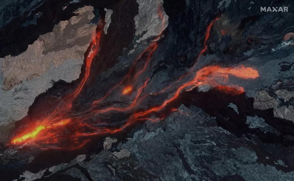 Lava is flowing down the side of the volcano at a temperature of 1,000C, but experts say this does not yet pose a big threat to local inhabitants.