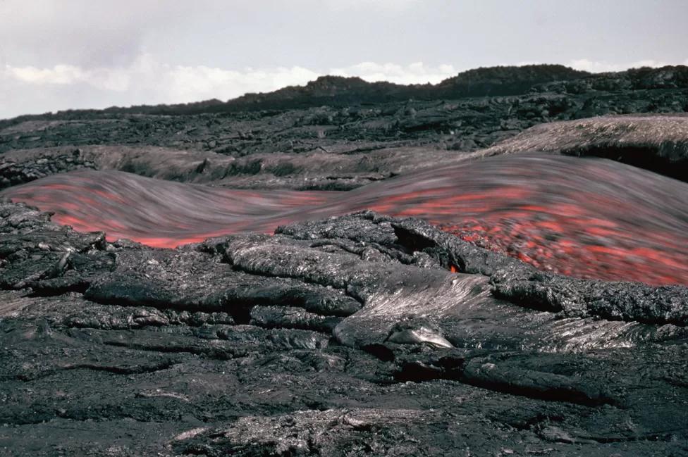 Instead, the lava flows at a fairly slow pace down the volcano’s side.