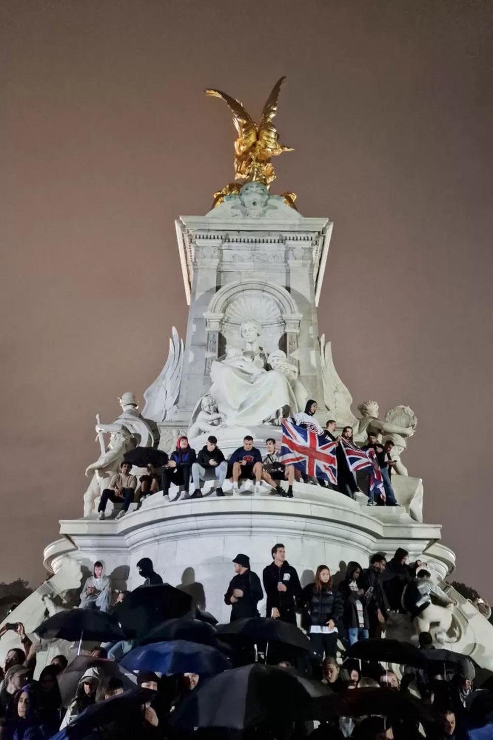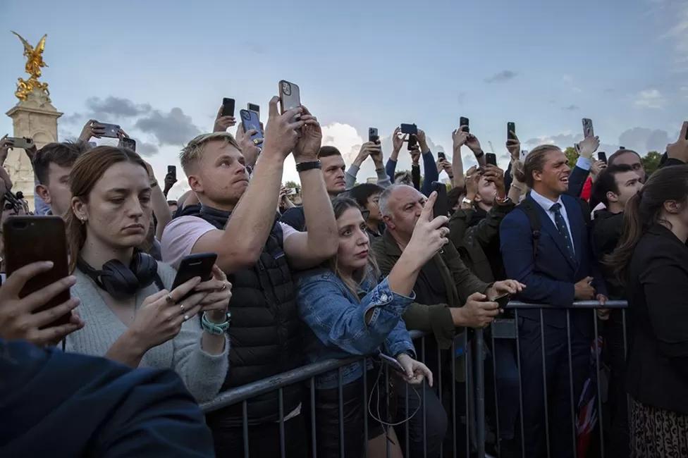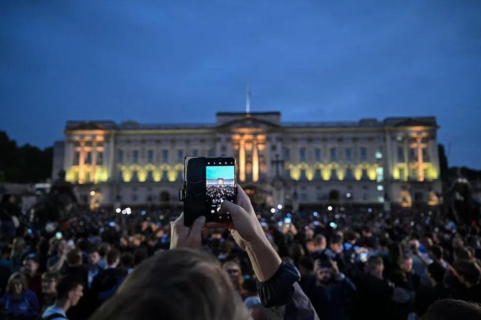 As word spread of the death of the Queen on Thursday, people gathered outside the gates of Buckingham Palace and took pictures of the Queen’s home, where the flag flew at half-mast.