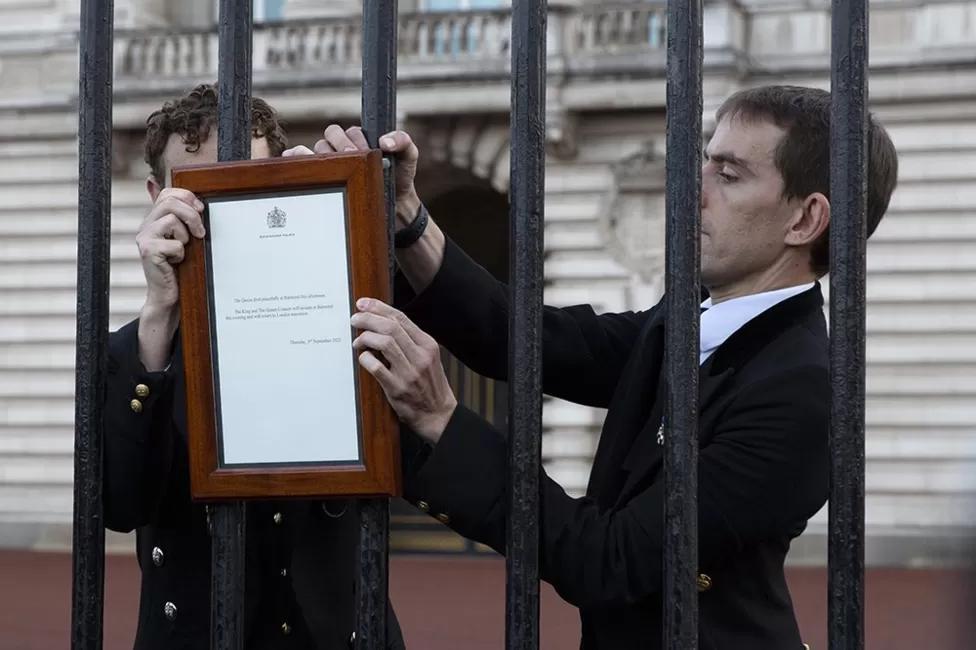 News of the monarch’s death was posted at the gates of Buckingham Palace.