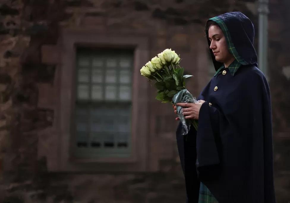 At another of the Queen’s residences, the Palace of Holyroodhouse in Edinburgh, mourners also laid flowers and paid their respects. One bouquet had a simple message.