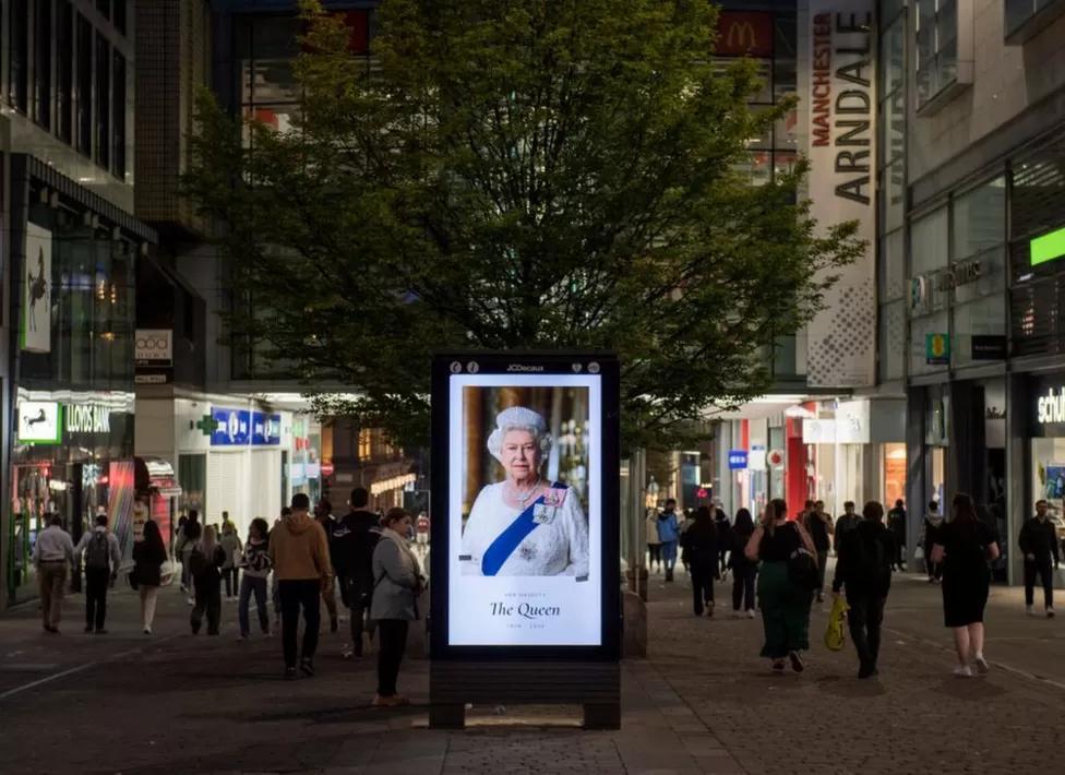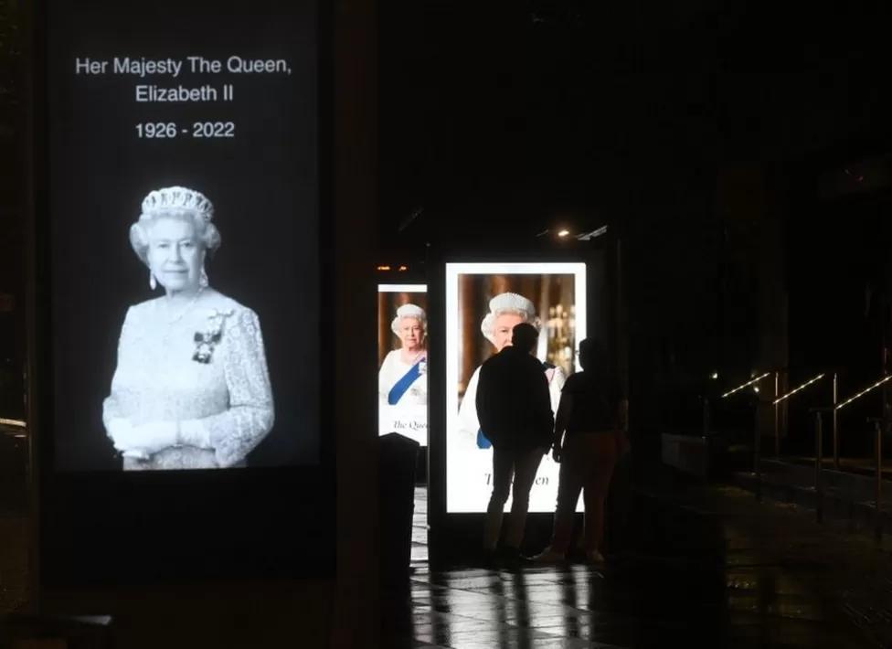 A huge electronic billboard that overlooks London’s Piccadilly Circus displayed an image of the Queen. Digital advertising space in High Streets and at bus stops also showed pictures of the Queen.