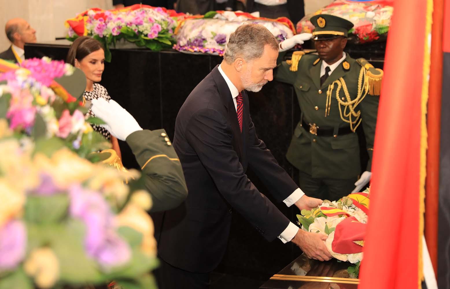 Africa-Press – Angola. The King of Spain, Felipe VI, this Tuesday honored the first President of Angola, António Agostinho Neto, with the laying of a wreath on his sarcophagus, at the Memorial adjacent to Praça da República, in Luanda.