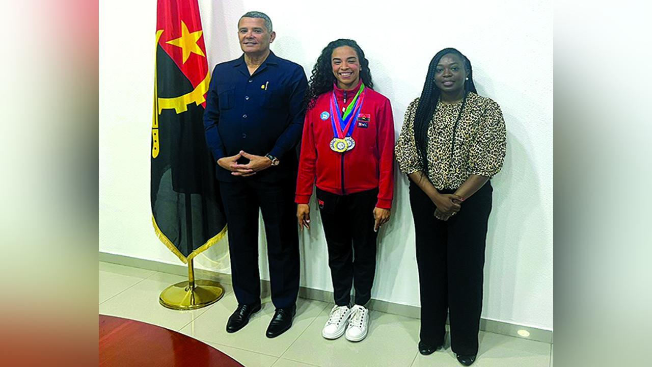 She promised to continue working to bring the country the best results than those obtained in the African Championships in Cairo, where she recently won. At the meeting, where she was accompanied by the president of the Angolan Gymnastics Federation, Miriam Valentim, and by coach Katarina Ivanova, the gymnast praised the role of the Bulgarian, her coach.