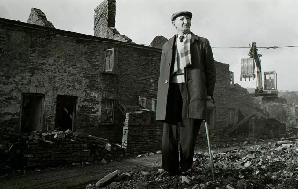 Mr Coles’ home is demolished as he looks on in 1983 – he had lived in the miners cottage at The Ranks in Abercarn, Caerphilly, all of his life