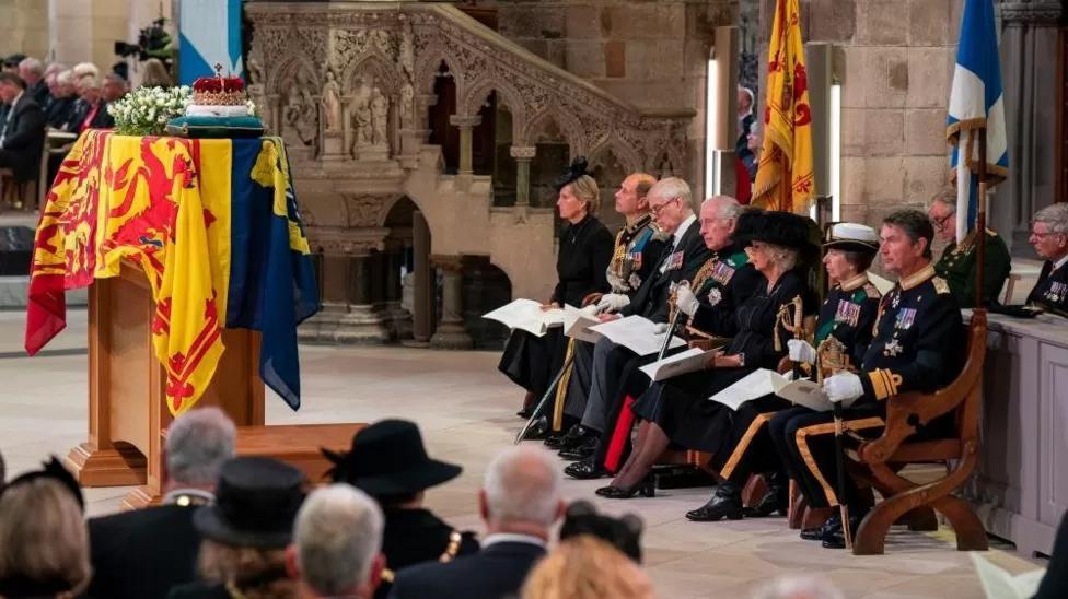 The Crown of Scotland was placed on the Queen’s coffin during the service. Historically, the crown has been used in ceremonies to represent the sovereign’s presence.