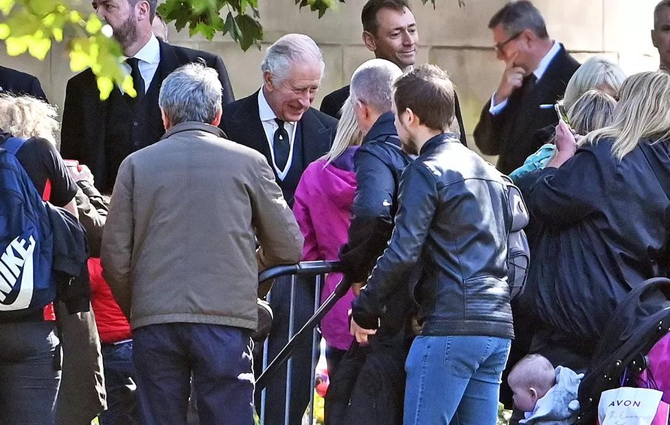 Well-wishers greeted the King in the garden area set aside for floral tributes to the late Queen outside the Palace of Holyroodhouse.