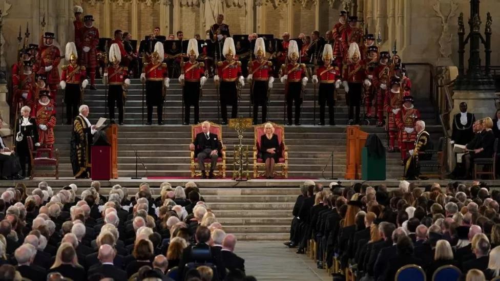 In the morning King Charles was at Westminster Hall, which is where the Queen’s coffin will lie in state later this week. At a ceremony the speakers from both Houses of Parliament – Sir Lindsay Hoyle and Lord McFall – addressed the King on behalf of MPs and peers.